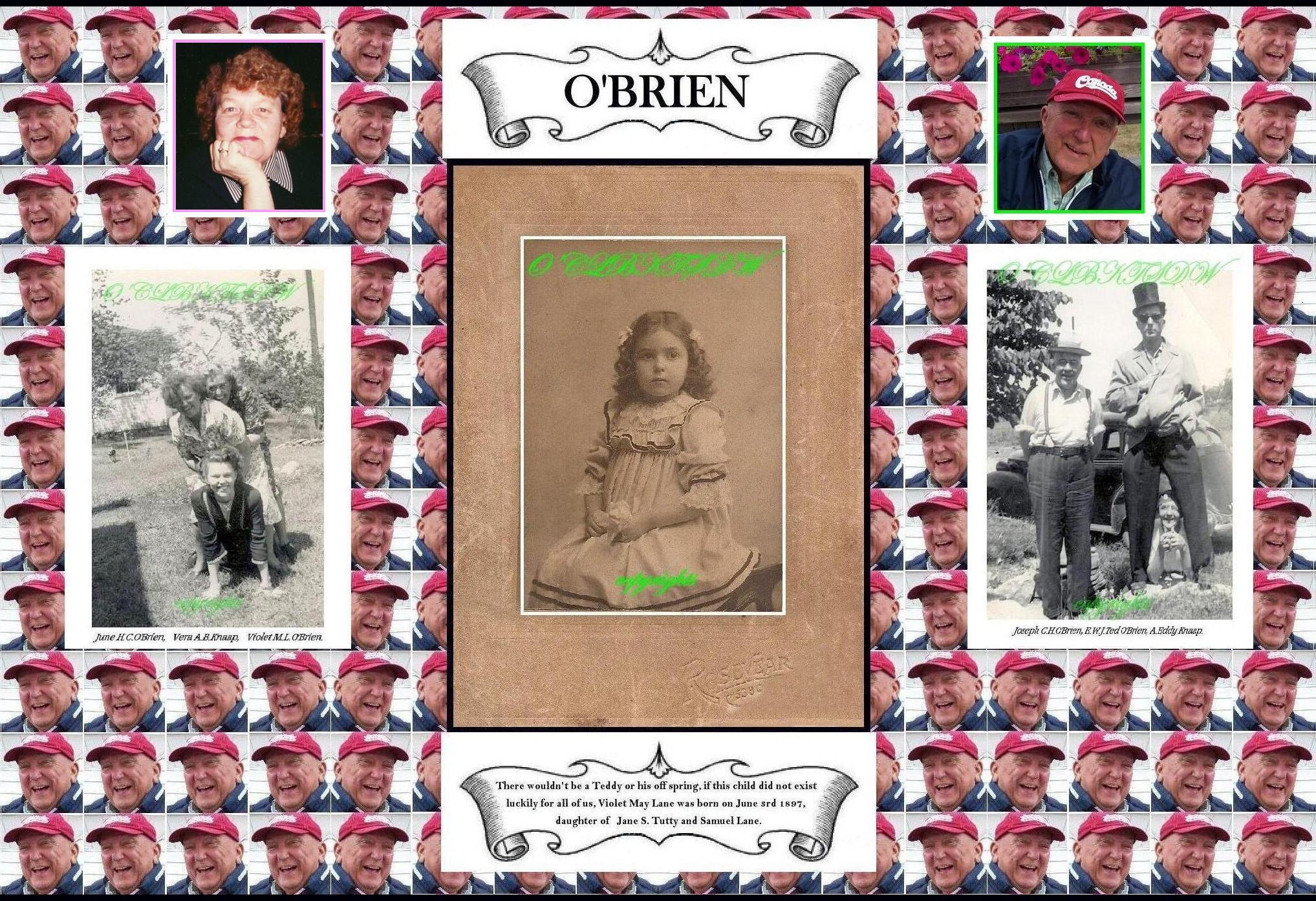 The O'Brien Family has it's roots in Ireland from centuries ago but our direct descendants immigrated to Canada in the mid 1800's from the little we do know at this point in time. Edward O'Brien was married to Anne (Wheeler) and lived in Kingston Ontario and they had one son named Joseph O'Brien. Joseph married a beautiful woman by the name of Violet May (Lane) the daughter of Samuel Lane of Toronto and Jane S.Tutty of England. Violet and Joseph had one son named Edward (Ted) O'Brien and he married a beautiful young woman from The Connaty Family at the end of the 2nd World War. The Connaty Family we know even less about at this time but we do know that Douglas Connaty was a Scotish descendant and married the lovely Vera Louisa Ilett Beard the daughter of Ruth (Careless) and Archie Warren Beard formerly of England. The Connaty Family consisted of two sons and two daughters and one of these daughters became the beautiful young woman June (Connaty-Knaap) who married Edward O'Brien. June and Ted had five children two daughters and three sons named Patty, Terri, Mike, Mark, and Nickie. To be continued ....... |